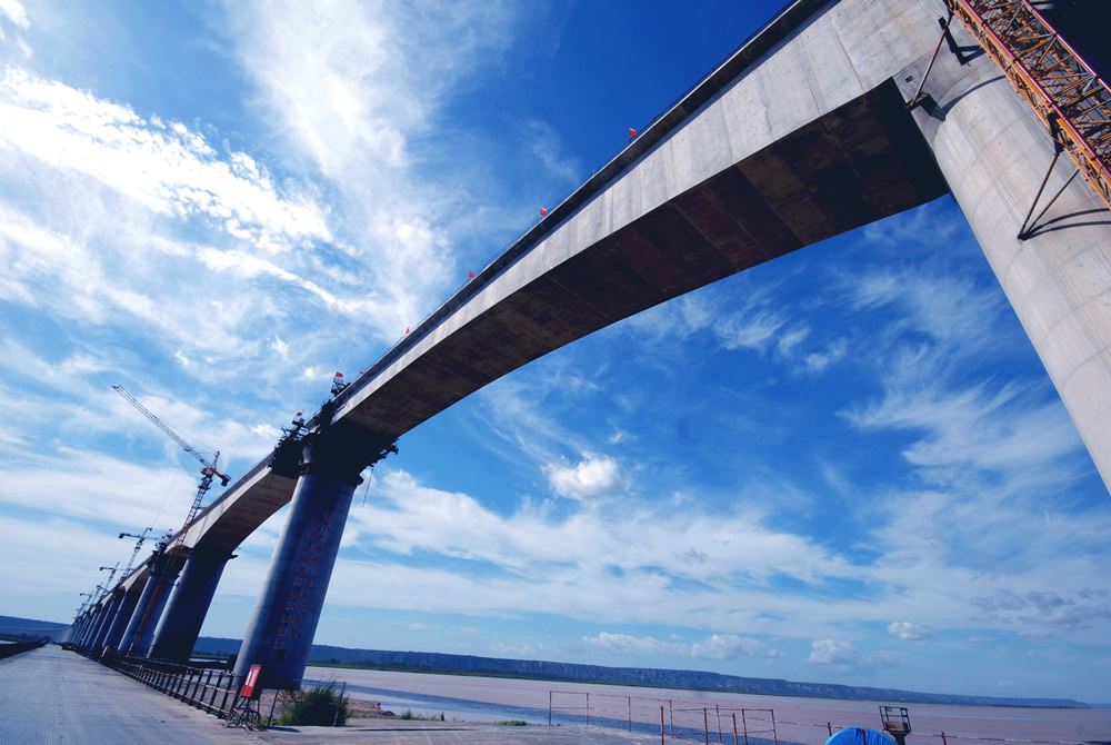 ] 2012年9月2日,大同到西安铁路客专晋陕黄河特大桥工程,大跨度连续梁形成壮美一景。